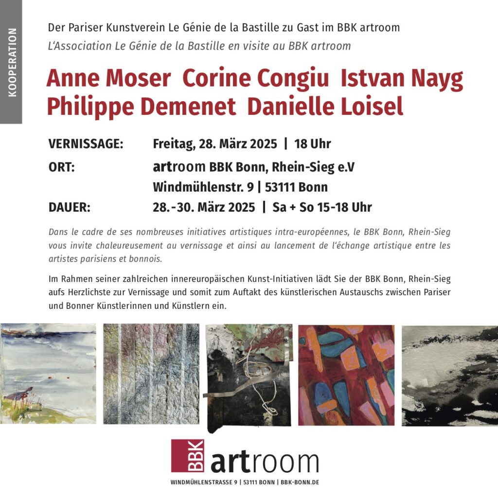 Du 28 au 30 mars 2025, un accueil très chaleureux des artistes de Bonn, pour une exposition dans la galerie du BBK, l’équivalent allemand de la Maison des artistes.
